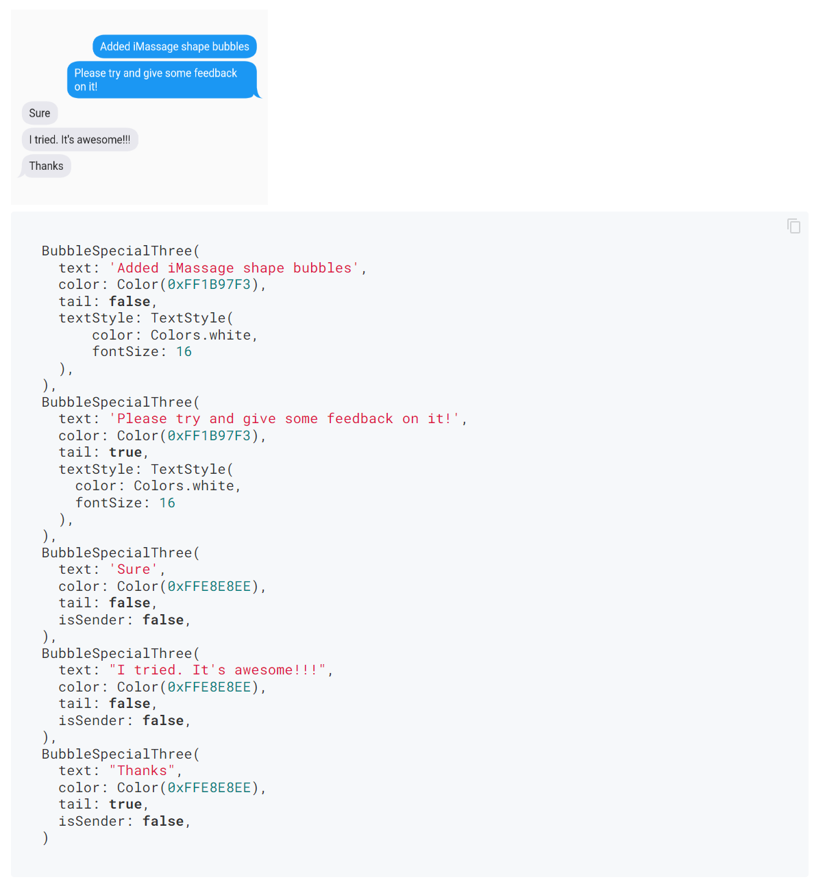 Flutter chat bubble widgets, similar to Whatsapp and more shapes. Easy to use and implement chat bubbles.