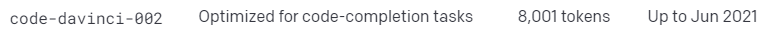 코드 작성에 최적화된 code-davinci-002가 있었지만 지금은 사용을 못하고 text-davinci-003으로 통합되었다.